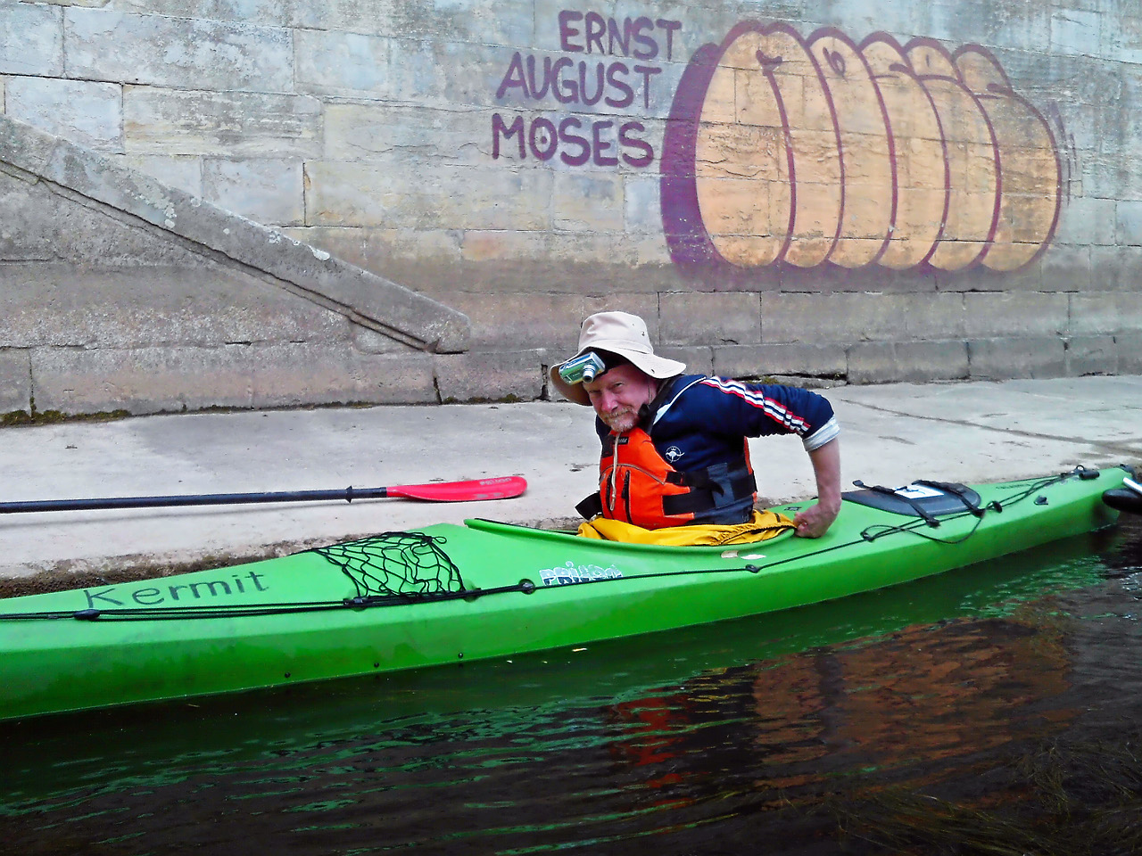 After getting the kayaking under control, the next question that arose was, “How to photograph it?” I felt reminded a little of what Matt from Christchurch had said about horse riding and how it enhances viewing the countryside because you are no longer forced to look at the ground for most of the time. The horse is taking care of that. Now kayaking offers a very different landscape than most hiking because of the lack of obstacles. Nor do you really have to care where to place the paddle, and the view is mostly directed forward to the goal. True, sitting on a river means that you are at the lowest point on the landscape and much of the lower view is obstructed by the bank. But even banks can be pleasant to look at.