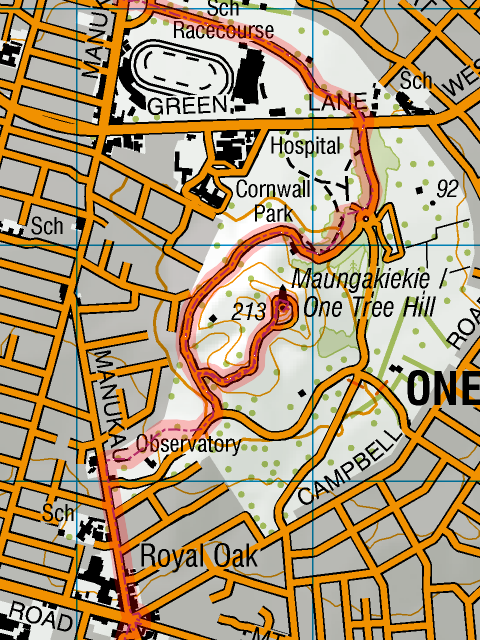 In town I checked the location of the InterCity bus terminal and the ferry building for Saturday morning and Friday afternoon respectively. The track was marked – yellow and black the way I was taking it, and blue and white in the opposite direction. Markings were a bit patchy every now and then, so I had to take the laptop out once in town to check the direction and the next moves. In the run up to Mt Eden there was a physical map which I photographed, and that was much more accessible for checking progress for the remainder of the trip.