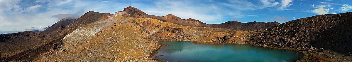 Just before the Emerald Lakes a couple of joggers appeared as a mercurial sign. I had taken a number of snapshots and a couple of handheld panoramas, but now I also wanted to take a number of measured sequences, i.e. fix a point in the landscape, photograph it, then move 10 steps and repeat – a sort of poor man’s time lapse that can be interpolated by GIMP/GMIC interpolation – interesting to see how this works – or by (4 + n)-point transformation in a way similar to the “accidental” sequences at both ends of the Milford Track in 2013.