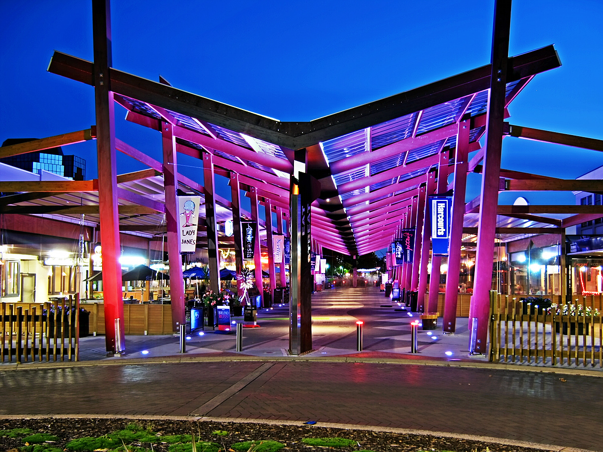 Time lapses of the sunset (made to the acquaintance of a woman from Bielefeld) and of Eat Streat with its changing lights. Unlike its name giver (which would have to be Frankfurt’s Fressgasse) there are actually restaurants here where you can sit in front of the restaurant under cover of a giant glass roof and watch the participants of the promenade.