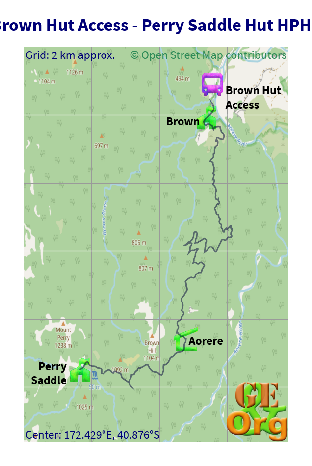 It was about then that I lost my glasses – or if I haven’t lost them I haven’t packed them in (see also later) – can remember setting up the ipod to listen to some podcasts and putting the glasses into my trouser pocket, and after that they were gone. In any case we swapped buses, and the trailer was emptied of the stuff going to Marahau (for the Abel Tasman Coastal Track), we paid, and the journey continued. I struck up a conversation with Sally from Bristol who is also an English teacher, and I managed to steer the topics towards tramping, rather than shop. There was a toilet stop before we left the main road (Takaka or Puramahoi) and I finished off the coke, and then it was the along the gravel road to the start of the track. One brief stop for some construction where I spotted a karearea (New Zealand falcon) in a field, and then we were there. I elected to have lunch of my now soggy roll while the spot sent an OK and the GPS got its satellite fix. Everyone else had left before me – I checked out the view of the Aorere River – and when I was back all the machines were working so I could also get underway just after 11:30.