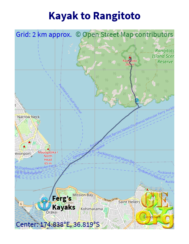Ferg’s wanted me to sign the Terms and Conditions which I did & they also needed a phone number or address which I eventually supplied as here. Then it was off to meet the others, get some aqua shoes, a spray skirt and a life jacket. I decided against an initial use of the board camera as it was going to be quite choppy and the gimbal does not compensate up-and-down movement very well. Anyway we were quickly kitted out and in the water with our leader Levi, and on our way to Rangitoto. My partner was Jay, a Bay Area computer program businessman over to advise a leisure company on the loyalty plan he manages for them. The boats were very new and handled very well, and we were fairly quickly across to the island. This was somewhat longer than the Auckland Sea Kayaks tour (from 2015), and we were on the island before them.