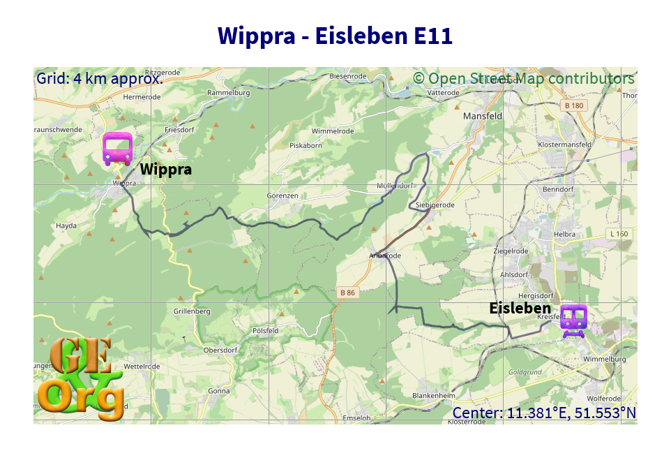 This track reached another pleasant valley, only this time the quads had been there first and the track was a mess. At the end there was another climb, this time to a railway bridge, but on the other side alas no markings. I followed the railway track for a bit and saw that I thought were or could have been signs, but nothing too convincing. In the end I landed in Hergisfeld just before 5:00 and at 5:02 there was a bus to Eisleben from where I caught a train to Halle. Rain had set in by now. The station at Halle is being rebuilt from scratch it seems and I was completely overwhelmed about getting to Nico’s place on my own, so I opted for a taxi. A few minutes later & here I was.